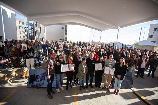 Anunció que, por instrucciones de la Presidenta, se avanza en la entrega gratuita de cancelaciones de hipoteca y, a la fecha, ya se han liberado 1 mil hipotecas en el estado, dando seguridad y certeza a las familias.