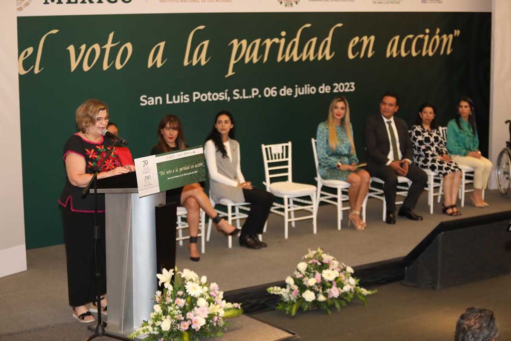 La presidenta del Instituto Nacional de las Mujeres (Inmujeres) Nadine Gasman Zylbermann, reconoció a San Luis Potosí como precursor del voto de las mujeres, por lo que también felicitó al Gobernador Ricardo Gallardo Cardona por impulsar acciones en apoyo a las mujeres potosinas para que accedan a una vida libre de violencia y con igualdad de oportunidades.