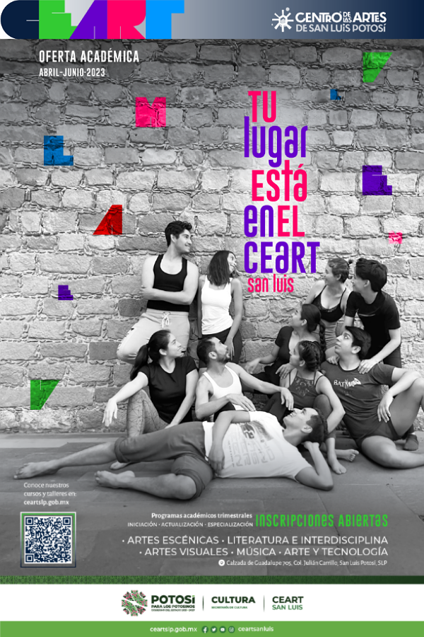 Este lunes 10 de abril se reanudan las inscripciones a los cursos y talleres artísticos que la Secretaría de Cultura de San Luis Potosí a través del Centro de las Artes tendrá disponibles para el periodo abril-junio 2023, como parte del nuevo programa académico de esta institución que contempla más de cincuenta cursos y talleres en música, artes visuales, artes escénicas, integración y literatura, además del nuevo programa de arte y tecnología que este periodo retoma actividades formativas.