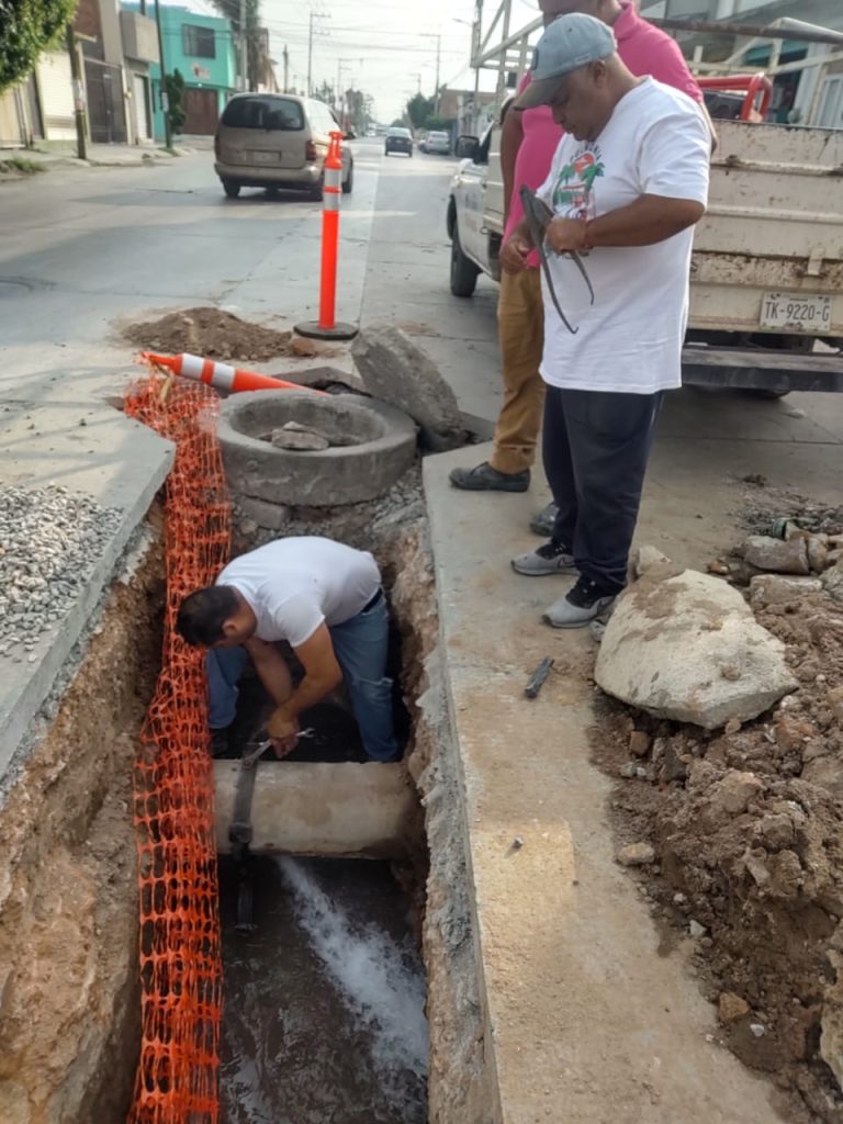 Una importante cantidad de agua fue recuperada por personal de Interapas, al reparar una fuga no visible, localizada en el Eje 104 en el fraccionamiento San Miguel al sur de la ciudad.