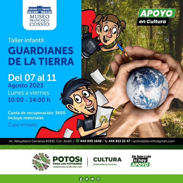 Debido al éxito del taller infantil “Guardianes de la Tierra”, la Secretaría de Cultura, el Museo Francisco Cossío extiende una semana la actividad dirigida a niños y niñas de 6 a 12 años que buscan en las artes plásticas y el reciclaje una forma de minimizar los daños provocados por la basura.