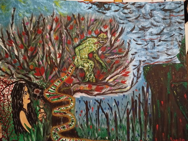 “La obra sacra es mi preferida y en el cuadro ‘Mi Edén’ quiero mostrar mi percepción de ese momento tan importante que nos condenó como humanidad. A través de mis obras busco compartir distintas experiencias visuales que reflejan mi personalidad y mis talentos, utilizando óleos, acuarelas, acrílicos, texturas y espátulas”, concluyó la artista.