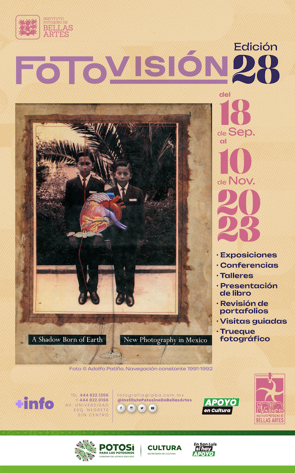 En San Luis Potosí si hay apoyo en cultura y a la promoción de sus diversas expresiones artísticas, y en este sentido, la Secretaría de Cultura de Gobierno del Estado anuncia la edición 28 del festival fotográfico Fotovisión, que se llevará a cabo en el Centro de Difusión Cultural “Raúl Gamboa” y la Galería Antonio Rocha Cordero del Instituto Potosino de Bellas Artes y otras sedes invitadas con una gran variedad de actividades sin costo alguno: exposiciones, conferencias, talleres, presentación de libro, revisión de portafolios, visitas guiadas, trueque fotográfico, y mucho más, del 18 de septiembre al 10 de noviembre de 2023; el programa completo se puede consultar aquí: https://bit.ly/3RjLAME.