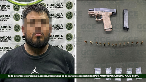 En la comunidad de Terrero Sur se detuvo a José “N” de 27 años, con antecedentes por delitos contra la salud, vinculado a un grupo de delincuentes que desestabilizan la tranquilidad de la población y se le aseguró un arma de fuego tipo escuadra calibre 9 milímetros, con un cargador y 14 cartuchos útiles.