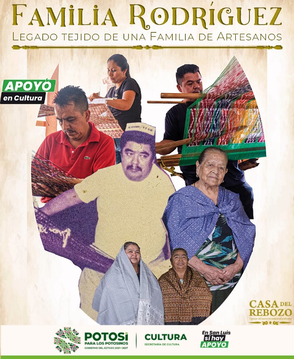 En San Luis Potosí si hay apoyo en cultura, por lo que la Secretaría de Cultura de Gobierno del Estado invita al público a conocer la exposición temporal «Familia Rodríguez Rivera: Legado tejido de una familia de artesanos» que se encuentra en la Sala Temporal Cecilio Duarte Armenta del Museo Casa del Rebozo en Santa María del Río, del domingo 13 de agosto al 15 de octubre de este año.