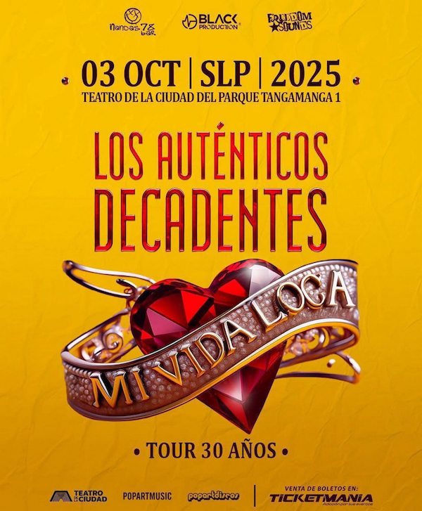 San Luis Potosí se prepara para recibir a Los Auténticos Decadentes el próximo 3 de octubre de 2025 en el Teatro de la Ciudad del Parque Tangamanga I. La banda argentina, que celebra más de 30 años de trayectoria, llevará al público potosino su gira internacional “Mi Vida Loca”, prometiendo un espectáculo lleno de energía, nostalgia y fiesta sin límites.