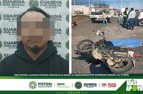 San Luis Potosí, S.L.P.- Tras los operativos de seguridad, efectuados por la Guardia Civil Estatal (GCE), para inhibir el robo de vehículos en todo el territorio potosino, un motociclista fue detenido, por el presunto delito de conducir una unidad con reporte de robo.