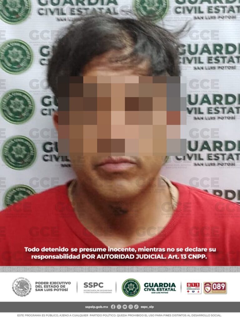 San Luis Potosí, S.L.P.- En atención a un llamado de auxilio sobre una persona que fue lesionada por un masculino, oficiales de Guardia Civil Estatal arribaron al lugar de los hechos, en donde detuvieron al probable responsable de este delito en la colonia Jardines del Sur de la capital potosina.