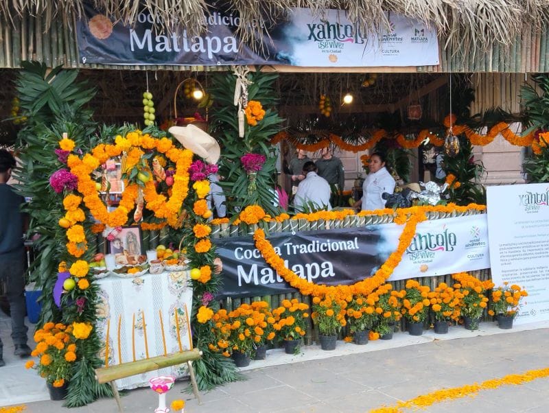 Un entusiasta contingente matlapense instaló casitas de barrio y coloridas decoraciones tradicionales, mientras médicos tradicionales ofrecen limpias y bendiciones hoy y mañana, compartiendo con los visitantes parte de la riqueza espiritual de la región. Además, cocineras locales deleitan a los capitalinos con los sabores auténticos de la gastronomía huasteca.