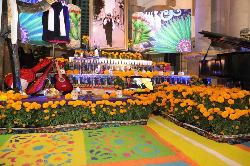 Dijo que es toda una tradición el Altar de Muertos en el interior de Palacio Municipal, dedicado a personajes de la historia mexicana o potosina, por lo que este año se dedica al ilustre músico Fernando “Chino González” de origen guanajuatense, pero quien prácticamente realizó toda su gran trayectoria musical en San Luis Potosí, estando en los más importantes escenarios nacionales e internacionales.