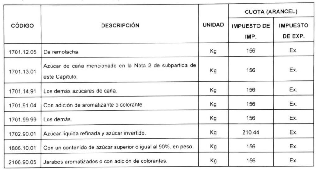 El documento cita en sus considerandos que la agroindustria de la caña enfrenta como consecuencia una situación de sobreoferta de azúcar en el mercado nacional que está poniendo en riesgo la rentabilidad y viabilidad de toda la cadena productiva que suman miles de personas «se modifican… las fracciones arancelarias de la tarifa de la Ley General de Impuestos generales de importación y exportación publicado el 2 de junio del 2022 y otras posteriores».