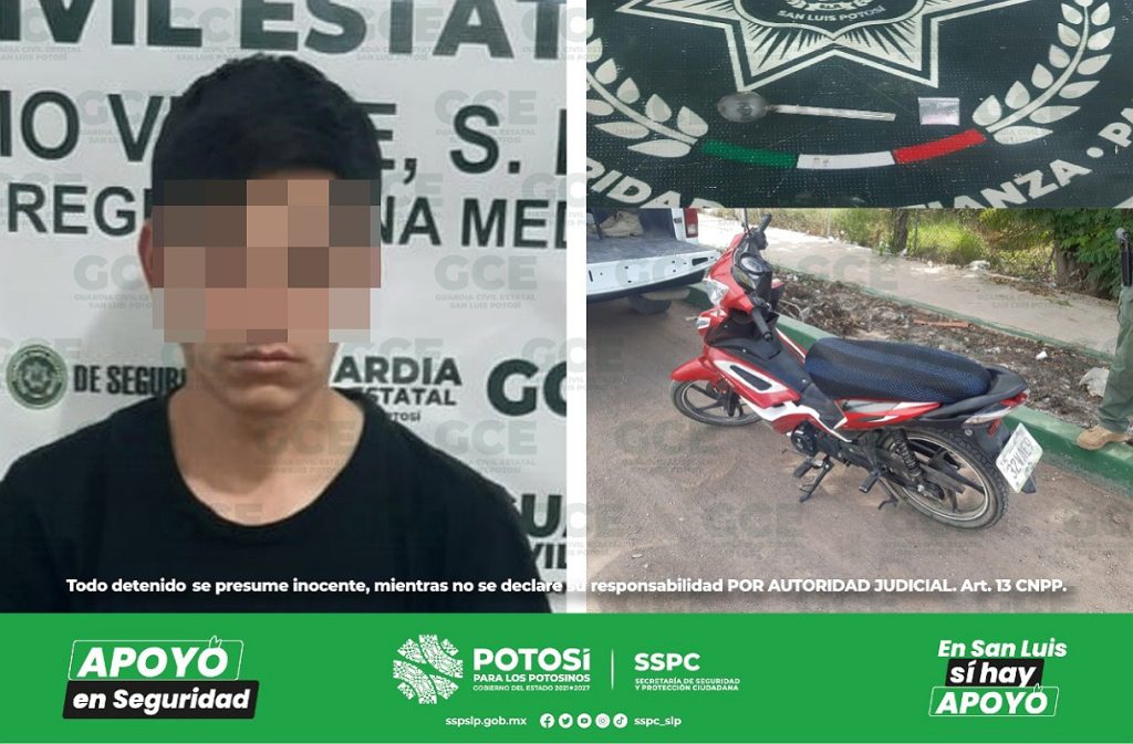 Ciudad Fernández, S.L.P.- Un dispositivo de seguridad desplegado por elementos de la Guardia Civil Estatal, permitió la detención de un motociclista, quien presumiblemente manejaba bajo los influjos de estupefacientes y atentó contra la seguridad propia así como la de otros conductores.
