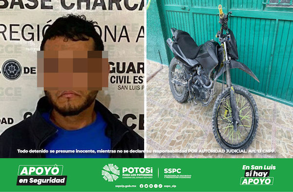Charcas, S.L.P.– Un dispositivo de seguridad, efectuado por elementos de la Guardia Civil Estatal (GCE) en el municipio de Charcas, permitió la detención de un conductor de una motocicleta, misma que contaba con reporte de robo; el individuo no pudo comprobar ser dueño de esta unidad, por ello fue remitido a las autoridades.