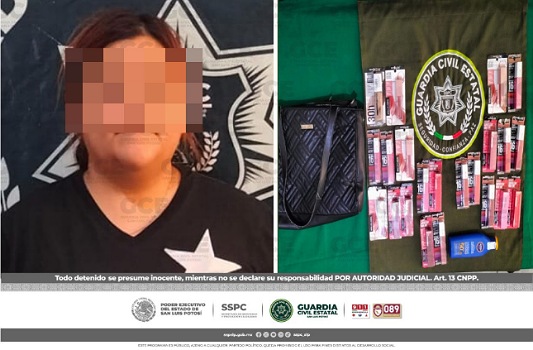 Ciudad Valles, S.L.P.- Una alerta recibida en la Línea de Emergencias 911, permitió que oficiales de la Guardia Civil Estatal (GCE) detuvieran a una mujer, quien presuntamente pretendió huir con varios productos cosméticos de un supermercado, sin embargo fue detenida sin lograr consumar el robo.