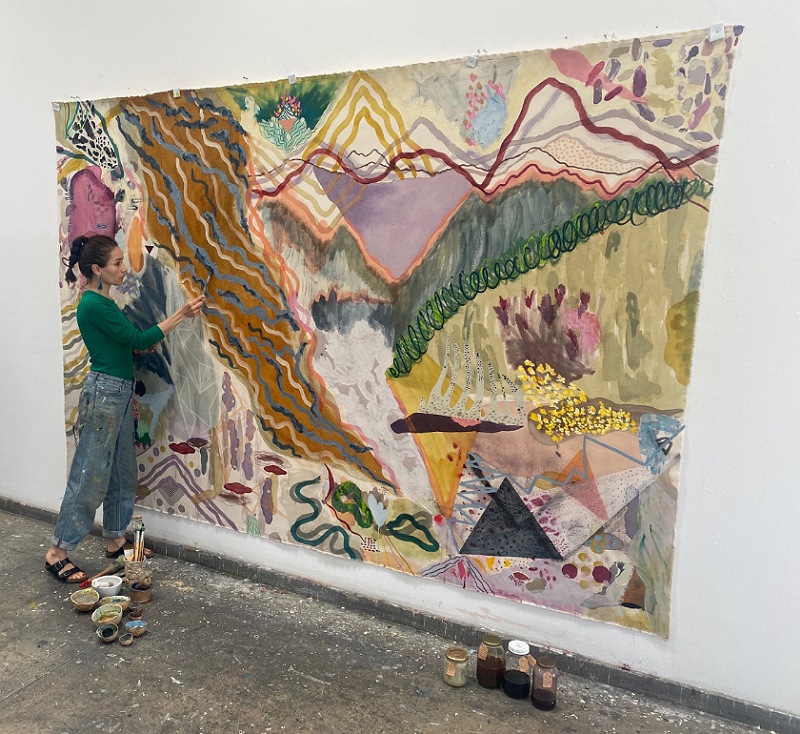 La pintura es, para ella, un territorio que la lleva a investigar y reflexionar sobre una amplísima gama de técnicas, materiales y conceptos, con los que establece singulares formas de correspondencia y conexión, ya sea a través del objeto, el dibujo, el collage, la gráfica, el video, la instalación y, últimamente, en la exploración e investigación de las tintas naturales a partir de raíces, semillas, flores, plantas y cortezas de árboles.