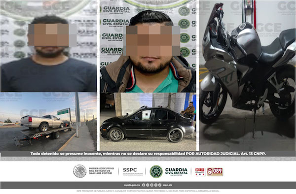 Uno de los hechos ocurrió en la colonia Los Salazares, elementos especializados del C5i2, dieron aviso a los agentes de la Guardia Civil Estatal (GCE), sobre la presencia de un sujeto a bordo de una camioneta Dodge, tipo Ram, modelo 2007, color gris, la cual había sido hurtada el 12 de marzo del año en curso, en la colonia Cactus, perteneciente a Soledad de Graciano Sánchez. De inmediato se implementó un operativo que culminó en el bulevar Manuel Gómez Morín, con la detención de José “N” de 40 años de edad, quien no pudo comprobar ser dueño de la unidad asegurada.