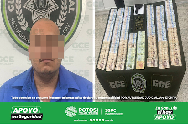 Soledad de Graciano Sánchez, S.L.P.- Labores de inteligencia permitieron la captura de un objetivo criminal presunto miembro de una célula delincuencial, quien podría estar vinculado en el tráfico de personas tanto mexicanas como extranjeras; al momento de su detención se le aseguró un arma de fuego, cartuchos útiles y 327 mil pesos en efectivo.