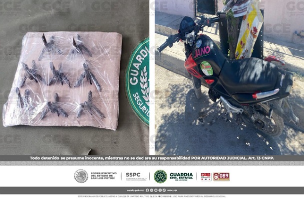 Los hechos fueron durante los operativos de seguridad en la colonia Pineño, ahí fue asegurada una motocicleta marca Italika, color negro con rojo, sin placa, en la que había una bolsa que contenía ocho objetos confeccionados con varilla.