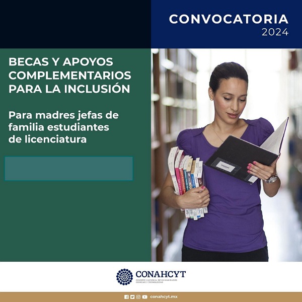 En apoyo a las mujeres potosinas a cargo de sus hijas o hijos, para que puedan concluir sus estudios de técnico superior universitario o licenciatura, el Consejo Potosino de Ciencia y Tecnología (Copocyt), invita a las interesadas en participar en la Convocatoria 2024 “Becas y apoyos complementarios para la inclusión para madres jefas de familia estudiantes de licenciatura” del Consejo Nacional de Humanidades, Ciencias y Tecnologías (Conahcyt).