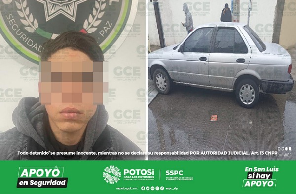 Como resultado de este operativo, en la capital potosina se ubicó y detuvo a un objetivo criminal prioritario, quien presumiblemente forma parte de una banda dedicada al robo de vehículos en la capital. Se trata de Ezequiel “N” de 18 años de edad, sorprendido en el Barrio de Santiago con un vehículo Nissan, línea Tsuru, color gris, el cual fue recuperado tres horas después de su hurto.