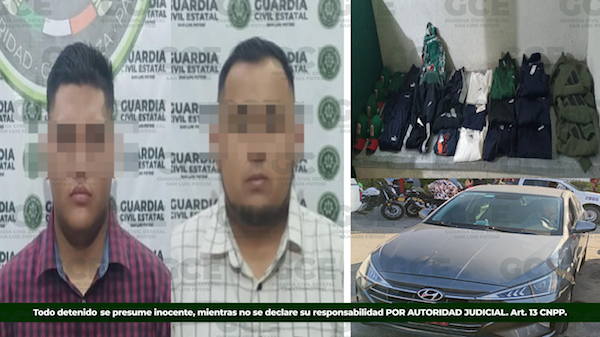 Como parte de los diferentes operativos que buscan fortalecer la seguridad y la tranquilidad de las y los potosinos, la Guardia Civil Estatal (GCE) en la colonia San Luis de la capital potosina, detuvo en flagrancia a un hombre tras pretender huir con un vehículo de carga, mientras que en una plaza comercial aseguró a dos personas quienes presuntamente hurtaron 28 prendas de ropa.