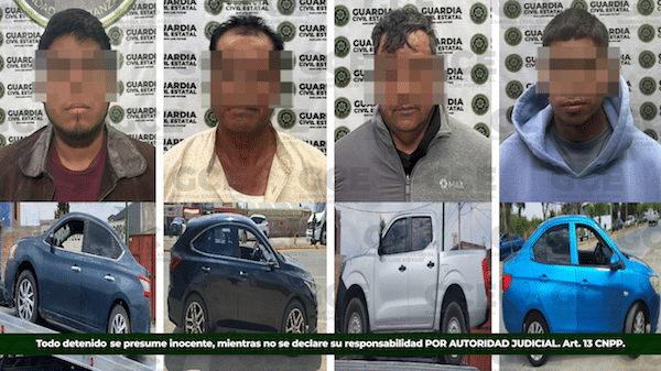En el marco de estas acciones, la GCE detuvo a cuatro personas por la posesión de vehículos con reporte de robo, quienes fueron puestas a disposición de las autoridades competentes e incautó cinco vehículos más, los cuales estarían relacionados con actividades ilícitas, fortaleciendo así las labores de investigación y prevención del delito.