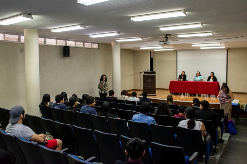 En esta ocasión, se contó con la participación de tres docentes de la Facultad: María Teresa Lucio Gil, Claudia Alicia Méndez Hernández y Fátima María Isabel De los Santos García, mientras que la también catedrática e investigadora Sandra Edith Nava Muñoz fungió como moderadora, quien detalló la importancia de estas actividades para las y los estudiantes, en donde se busca que el trato hacia la mujer sea de manera igualitaria para ambos géneros.