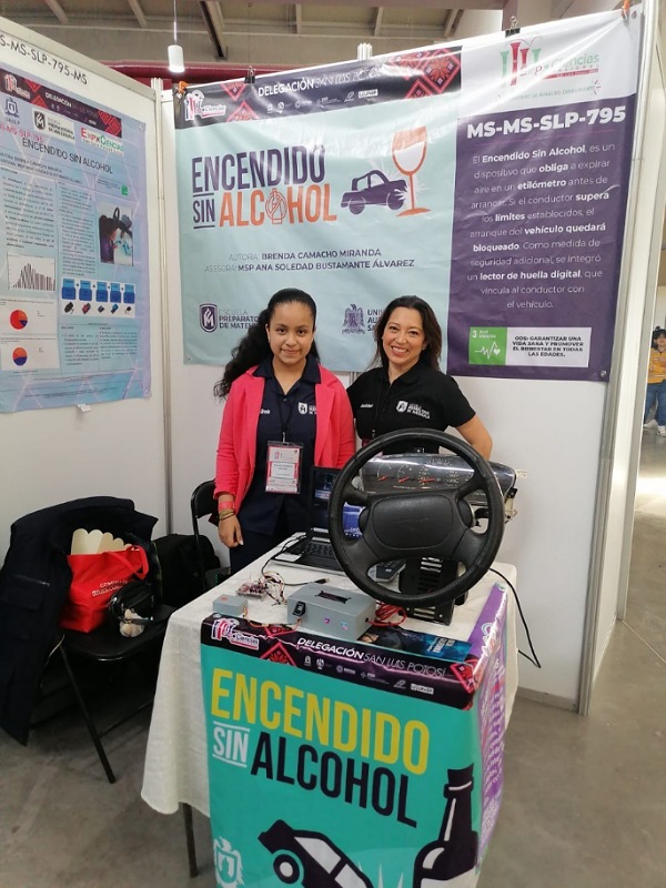 Apoyada por Ana Soledad Bustamante Álvarez, catedrática de la disciplina de química de la EPM, la alumna de tercer semestre desarrolló un proyecto basado en el diseño de un dispositivo que inhibe el encendido eléctrico de un automóvil si se detectan importantes cantidades de niveles de alcohol en el aliento del conductor, y que resultó triunfador en la etapa nacional de la edición 2022 de ExpoCiencias 2022 que organizó el COPOCYT en colaboración con la UASLP.