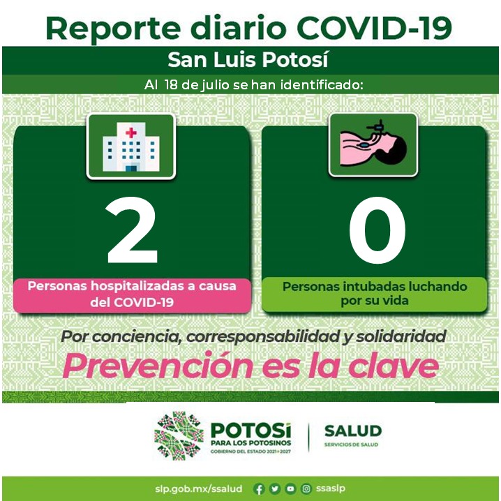De los nuevos casos, se detectaron siete en la Jurisdicción Sanitaria I; uno, en la Jurisdicción Sanitaria III de Villa de Pozos; no se presentaron casos nuevos en personas residentes de otra entidad ni en las siguientes jurisdicciones sanitarias: II de Matehuala, IV de Rioverde, Ciudad Valles, VI de Tamazunchale y VII de Tancanhuitz.