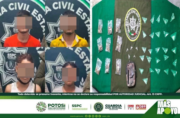 Con ello se aseguró un kilo con 593 gramos de marihuana; 271 dosis de “cristal” y 26 de cocaína. Sacando del mercado negro estas sustancias nocivas para la salud de las y los potosinos.