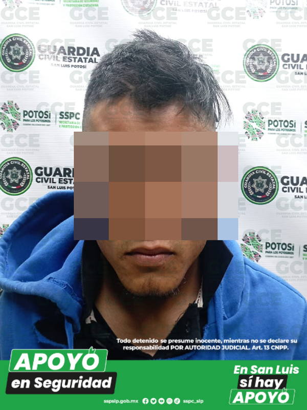 San Luis Potosí, S.L.P.- Gracias a la denuncia de un individuo, sobre el allanamiento de su domicilio en la capital potosina, un hombre, presunto responsable de estos hechos, fue detenido por agentes de la Guardia Civil Estatal (GCE).