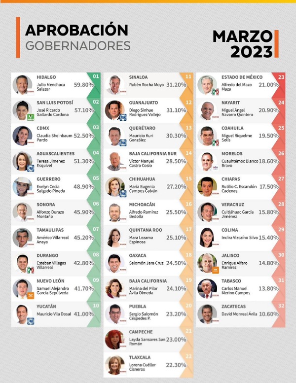 Encuesta de Arias Consultores ubica al Gobernador potosino en el segundo lugar nacional con mayor aprobación ciudadana en marzo 2023