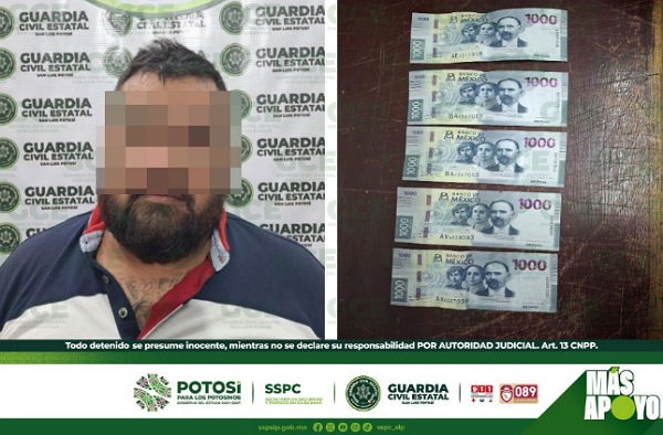 San Luis Potosí, S.L.P.- Una denuncia ciudadana sobre la presencia de un hombre que presumiblemente ingería bebidas embriagantes en la vía pública, movilizó a la Guardia Civil Estatal (GCE) quienes lo pusieron bajo arresto; el presunto trató de evadir su responsabilidad legal ofreciendo dinero a los uniformados, por ello fue puesto a disposición de la autoridad competente por el probable delito de cohecho.