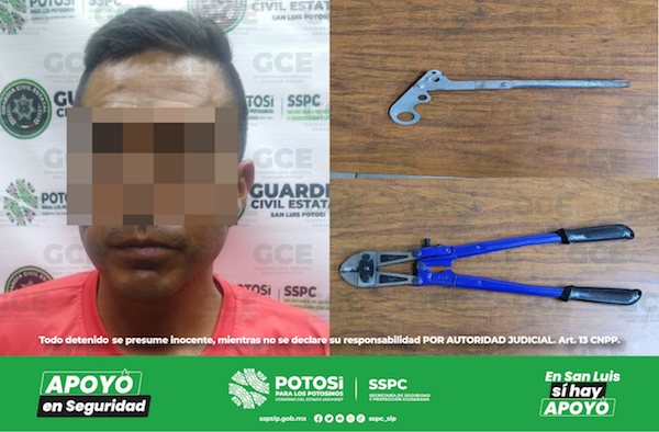 San Luis Potosí, S.L.P.- Una denuncia atendida en el Sistema de Emergencias 911, tuvo como resultado la detención de dos individuos en la capital potosina, después de que fueran reportados por la parte afectada como los presuntos responsables de provocar daños a propiedad privada.