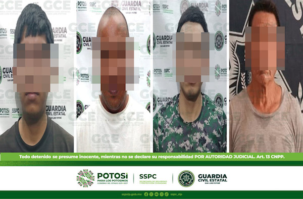 S.L.P.- Derivado de los reportes que son atendidos por los Operadores del Sistema de Emergencia 911, cuatro hombres fueron detenidos por agentes de Guardia Civil Estatal (GCE), luego de que fueran denunciados por el probable delito de violencia familiar.