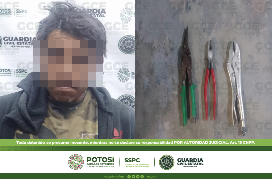 Al momento de la detención del hombre, se le aseguraron dos pinzas de corte y unas pinzas de presión, quedando a disposición de la Fiscalía General del Estado junto con lo asegurado.