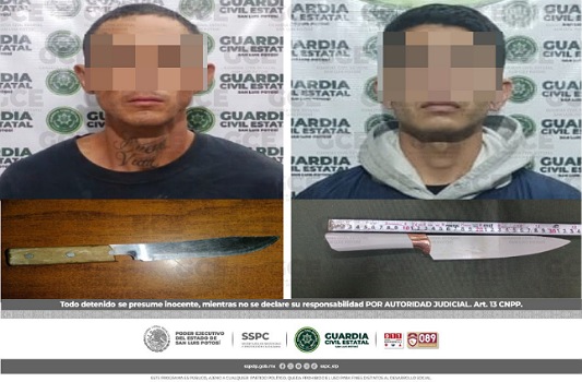 Una de las detenciones tuvo lugar en la colonia División del Norte, ahí fue detenido Jesús “N” de 19 años de edad, luego de asegurarle un cuchillo de 20 centímetros. Otro de los sucesos tuvo lugar en el municipio de Soledad de Graciano Sánchez, en la colonia División del Norte, ahí resultó detenido José “N” de 28 años, sorprendido con un cuchillo entre sus pertenencias.