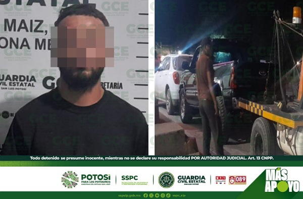 Ciudad del Maíz, S.L.P.- Policías de la Guardia Civil Estatal (GCE) detuvieron a un automovilista, por probable manejo temerario, al poner en peligro la integridad de terceras personas y la propia.