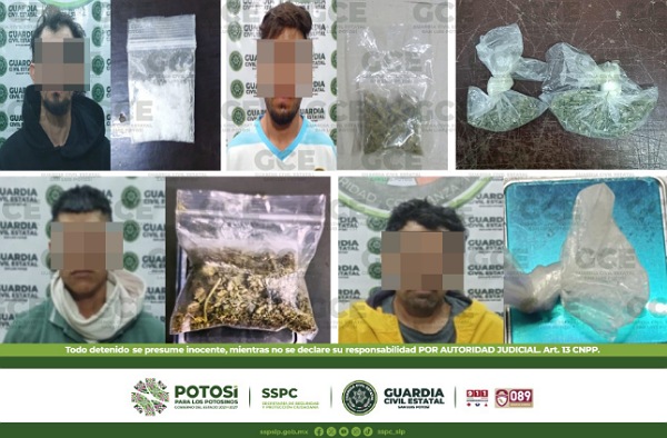 S.L.P.- Como resultado de los trabajos de prevención y seguridad efectuadas en la Entidad potosina, gentes de la Guardia Civil Estatal (GCE) detuvieron a 10 personas por la probable posesión de droga.