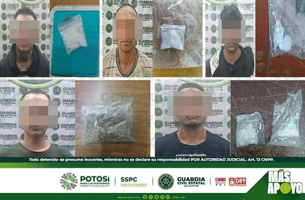 S.L.P.- Acciones operativas para el combate a la venta y consumo de droga, permitieron la detención de 11 personas, por agentes de la Guardia Civil Estatal (GCE). Los hechos fueron tanto en la capital como en el interior del Estado.