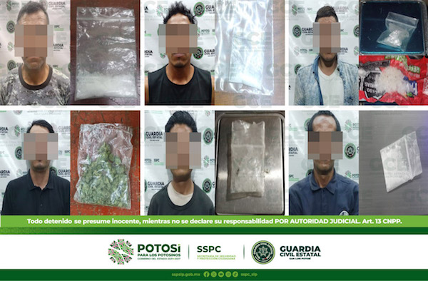 Otro de los hechos tuvo lugar en el municipio de Ciudad Valles, en la colonia San Rafael, ahí se detuvo a Juan “N” de 35 años de edad, con una dosis de “cristal”; mientras que en la zona centro de El Naranjo, Edgar “N” de 27 años fue detenido con cuatro dosis de “cristal”; Feliciano “N” de 24 años resultó detenido con seis dosis de “cristal”, en el municipio de Axtla de Terrazas; por su parte, en el municipio de Cerritos, Julio “N” de 33 años, quedó detenido con dos dosis de marihuana; por último, en este mismo municipio, en la colonia Guadalupe, Geovani “N” de 24 años fue asegurado con dos dosis de “cristal”.