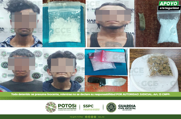 Los detenidos fueron puestos a disposición de la Fiscalía General del Estado junto con las dosis de estupefacientes que se aseguraron,