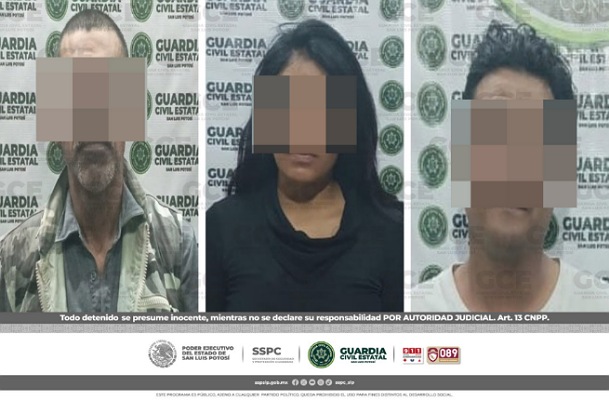S.L.P.- Derivado de la respuesta inmediata de las autoridades de la Guardia Civil Estatal (GCE), ante casos de violencia familiar, tres personas resultaron detenidas por el probable delito de agresión a miembros de su familia.