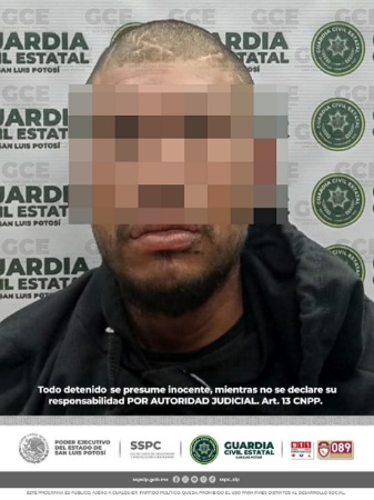 San Luis Potosí, S.L.P.- Dispositivos de prevención y seguridad desdoblados por elementos de la Guardia Civil Estatal, permitieron la detención de un hombre que presuntamente allanó un domicilio en la capital potosina.