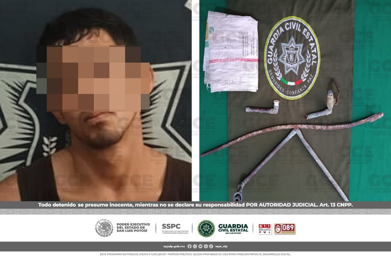 Ciudad Valles, S.L.P.- Una alerta atendida en la Línea de Emergencias 911, permitió que oficiales de la Guardia Civil Estatal (GCE) detuvieran a un hombre por los presuntos delitos de daños y robo de tubería de cobre.