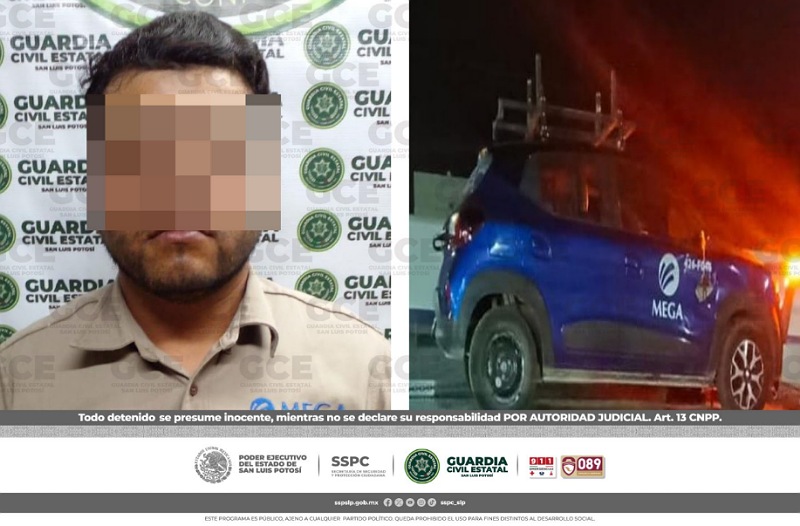 San Luis Potosí, S.L.P.- Un hecho de tránsito en donde resultó una persona lesionada, movilizó a los agentes de la Guardia Civil Estatal (GCE), lo que derivó a la detención del presunto responsable y al aseguramiento de su unidad.