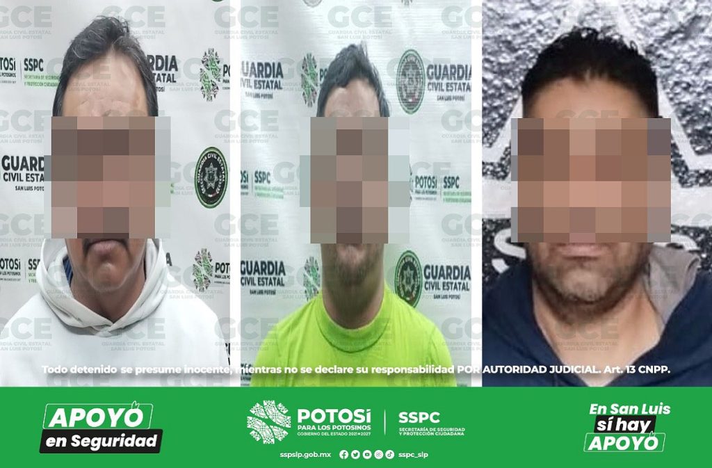 S.L.P.- Diferentes denuncias ciudadanas atendidas en la Línea de Emergencias 911, tres hombres fueron arrestados por la Guardia Civil Estatal (GCE), por el probable delito de violencia familiar, en agravio a sus parejas.