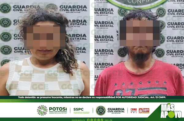 Villa de Arriaga S.L.P.- Agentes de la Guardia Civil Estatal dentro de los resultados que de manera positiva sigue generando en sus labores operativas diarias, llevaron a cabo la detención de una pareja de adultos como presuntos responsables de robo de infantes, delito que habrían cometido en el Estado de Nuevo León.