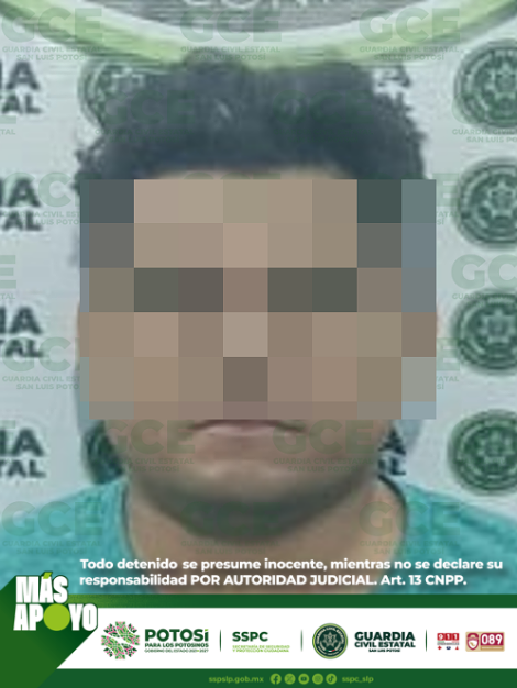 San Luis Potosí, S.L.P.- Un hombre resultó detenido por agentes de la Guardia Civil Estatal (GCE), tras ser señalado del presunto delito de daños a un vehículo, en agravio de una mujer, quien solicitó del apoyo policiaco para proceder legalmente en su contra.