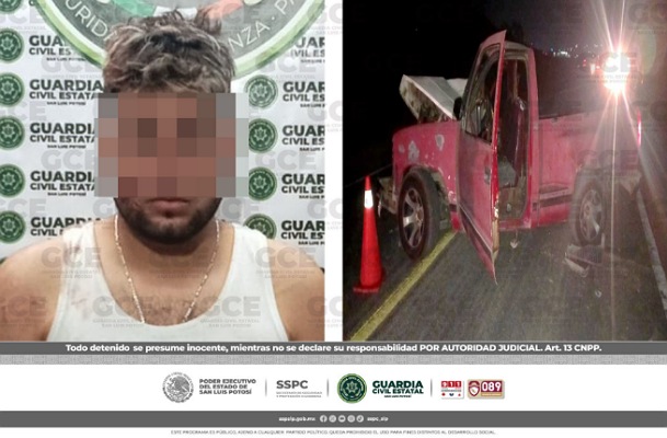 En la Carretera 57 Matehuala-SLP kilómetro 43, es detenido Jesús de 24 años de edad, por provocar lesiones en un hecho de tránsito en agravio de un masculino, así como causar daños a un vehículo marca Chevrolet Cheyenne modelo 1989 en color rojo.